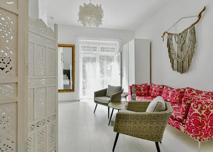 Disfruta de tus vacaciones en Budapest en el apartamento Buda Bliss Garden Budapest. Ideal para quienes buscan una experiencia auténtica, está situado a una distancia de 2 km de la Plaza Vörösmarty y a 25 minutos a pie de los Zapatos en el Danubio.